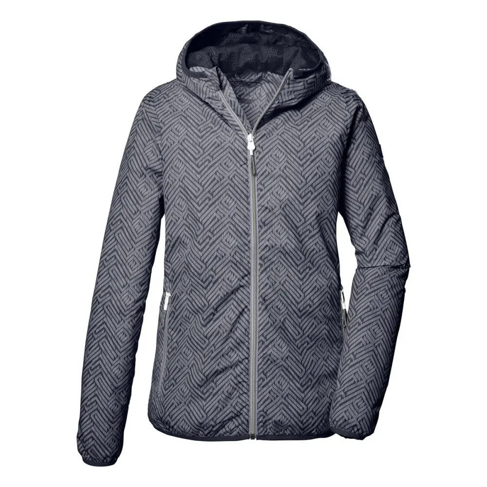 Lehká dámská funkční bunda boduje speciálním celoplošným potiskem s kontrastními detaily a funkčními vlastnostmi.