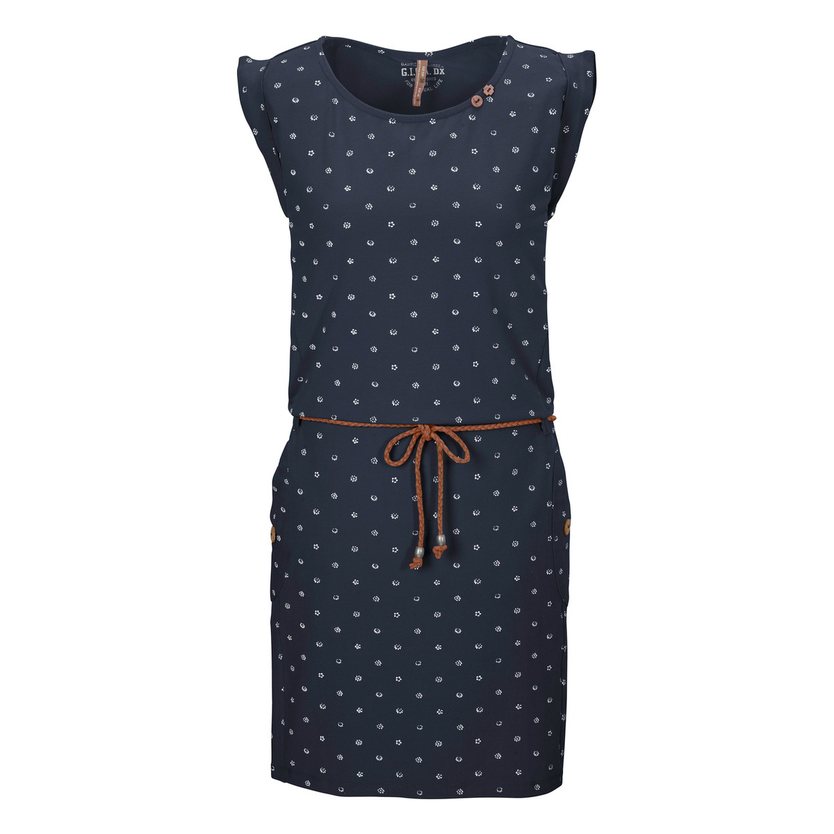 S šaty od GIGA DX může přijít léto. Díky elastickému materiálu s vysokým podílem bavlny jsou šaty obzvláště pohodlné. Celoplošný potisk a knoflíky na výstřihu a obou kapsách jsou poutavé. Spletený pás ve výšce boků dodává námořní nádech. Těšte se na léto s killtecem!