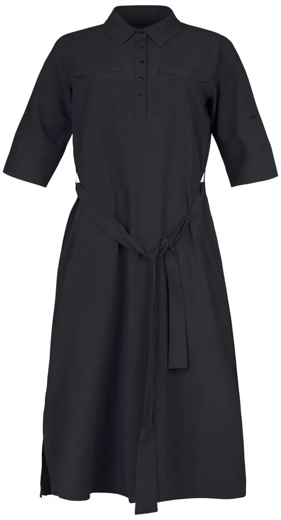 Rukávy lze nosit v delším provedení či ohrnout na kratší délku a zapnout na knoflíček. Lepený dolní kraj i lem rukávů dodává šatům čistý vzhled. Jednobarevné provedení a elegantní styl v kombinaci s funkčností a pohodlím oceníte pro běžné nošení, cestování a volný čas. Antistatická úprava materiálu.