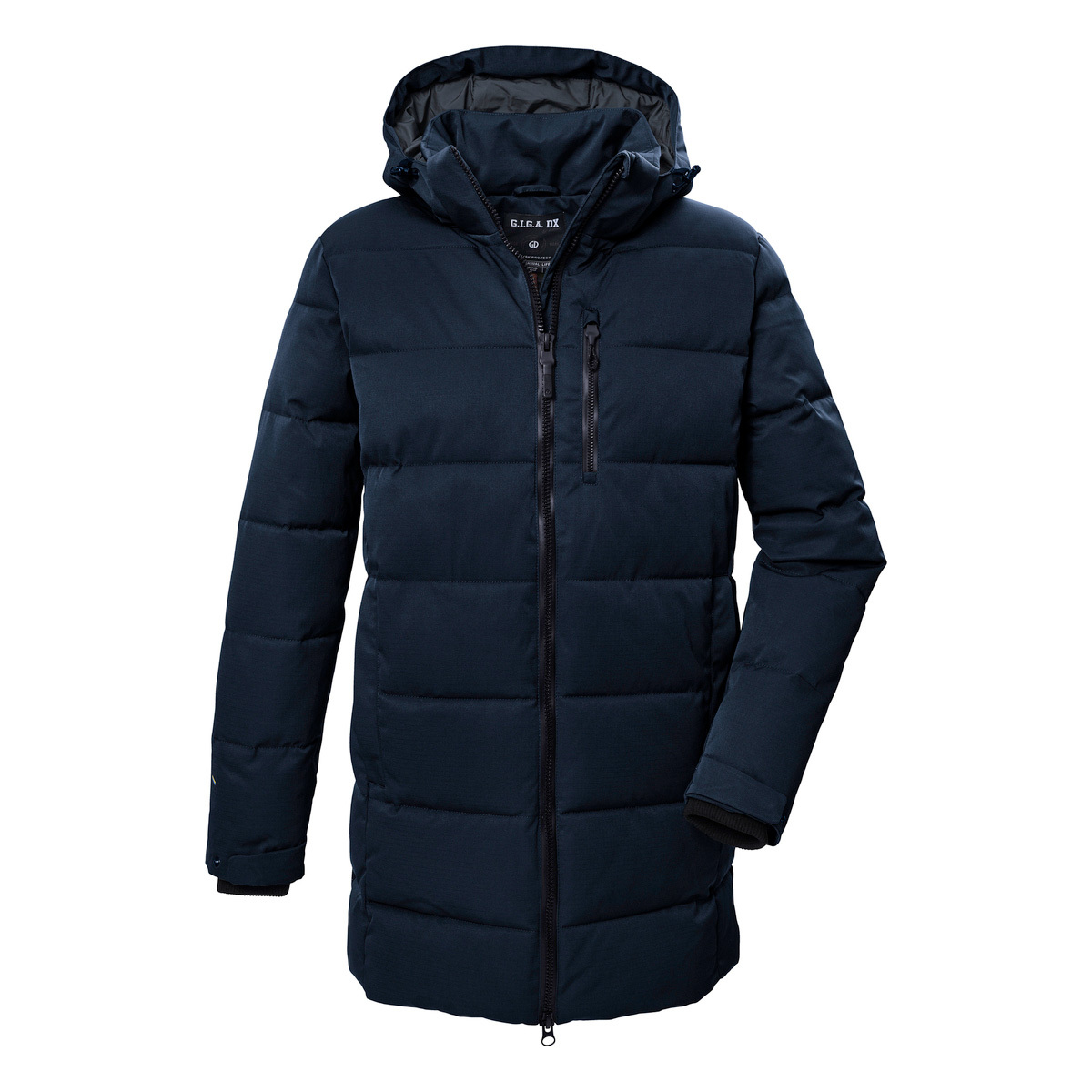 Podšívkovaná prošívaná parka GIGA DX z kolekce Protection zaujme kombinací funkčnosti a ležérního stylu. Je větruodolná a vodoodpudivá s hydrostatickým sloupcem 10 000 mm. Zároveň je parka prodyšná s propustností vodní páry 5 000 g/m²/24 h. Kapuci lze nastavit a v případě potřeby odepnout. Pohodlné pletené manžety na nastavitelných rukávech zabraňují pronikání větru a chladu. Voděodolný oboucestný zip lze otevřít shora i zespodu, což zajišťuje volnost pohybu. Lem lze nastavit stahovací šňůrkou. Různé kapsy nabízejí dostatek úložného prostoru pro nezbytnosti. Tato zimní parka má voděodolnou úpravu bez PFAS a je částečně vyrobena z recyklovaných materiálů.